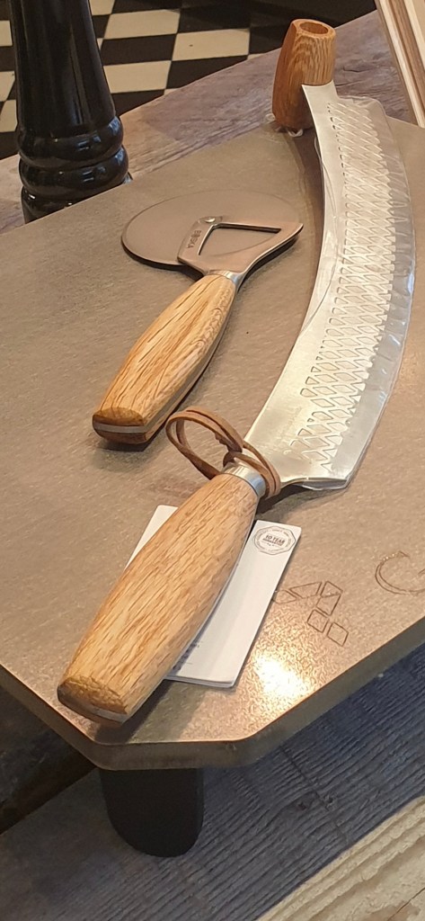 Deras pizzaskärare är supervass och blästrad, så lätt att diska. Och snygga med sitt handtag i ek!